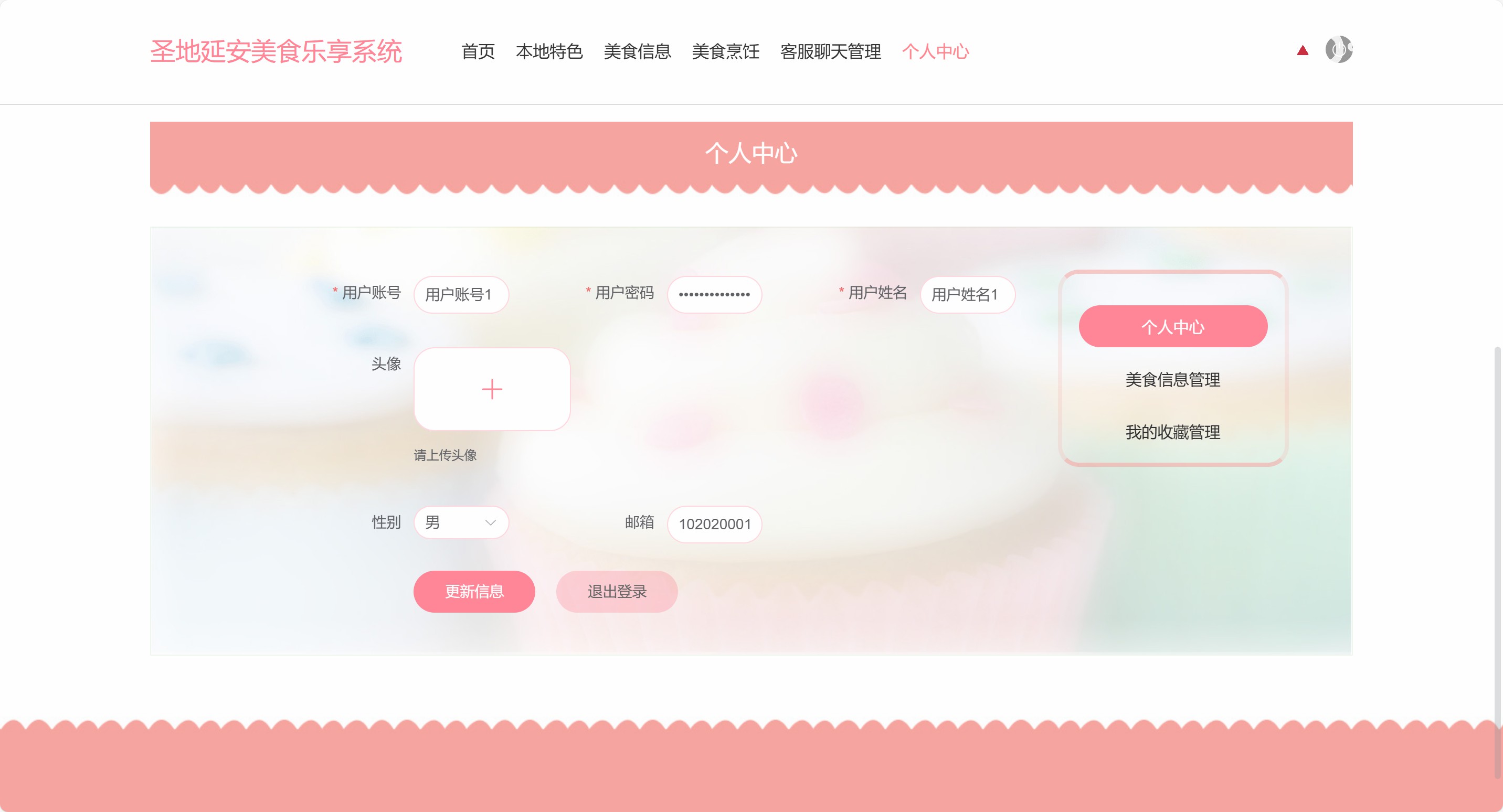 此美食乐享系统基于SpringBoot框架开发,数据库mysql,前端使用Vue,前后台分离项目,拥有用户管理,客服聊天管理,美食类型管理,本地特色管理,美食烹饪管理,美食信息管理。