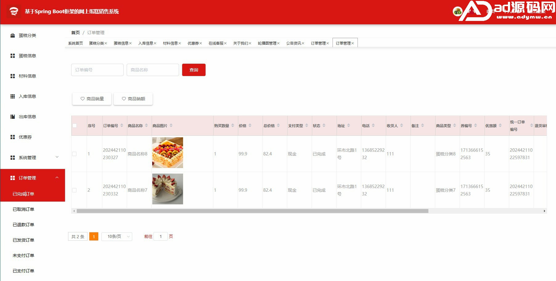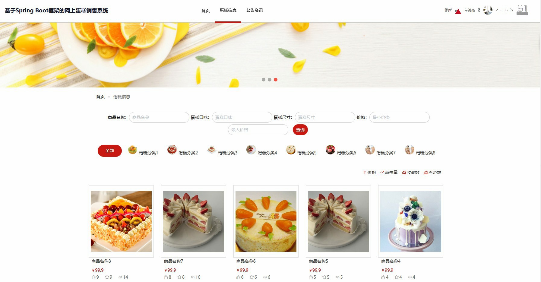 此网上蛋糕销售系统系统基于SpringBoot框架开发,数据库mysql,前端使用Vue,前后台分离项目,拥有用户管理,信息管理,订单管理,个人中心,客服管理。