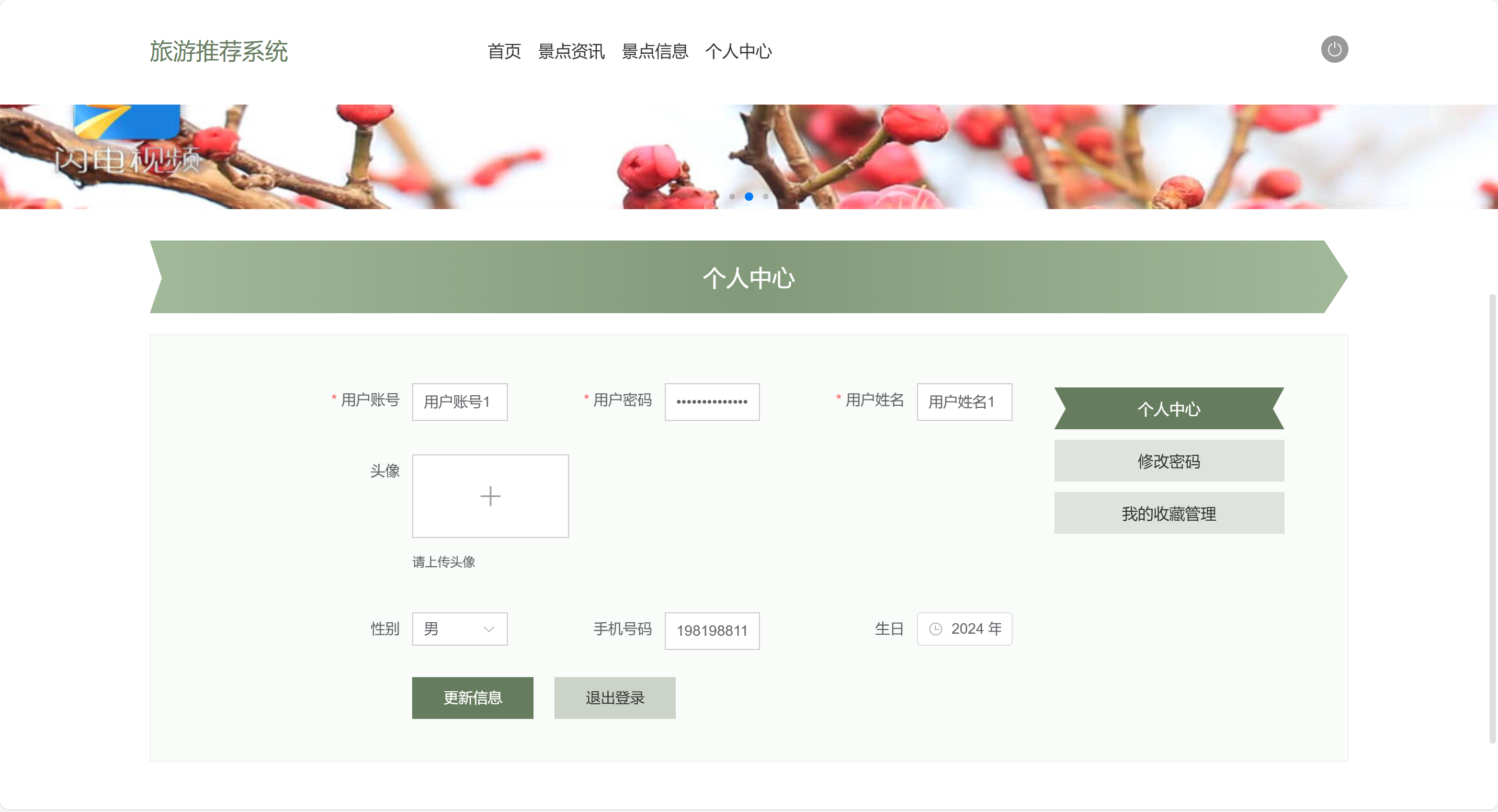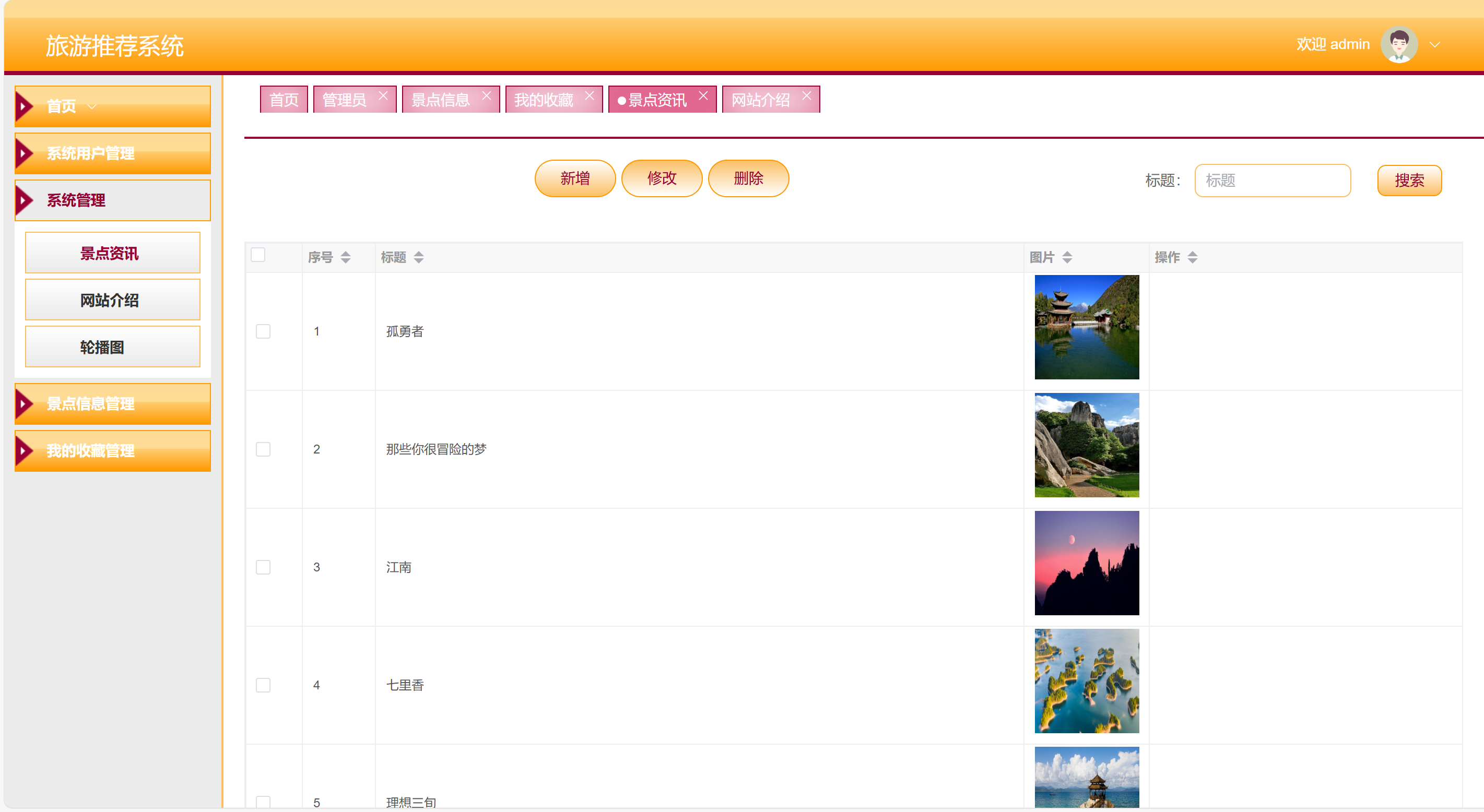 此系统基于SpringBoot框架开发,数据库mysql,前端使用Vue,前后台分离项目,拥有用户管理,系统管理,景点信息管理,我的收藏,景点信息管理。
