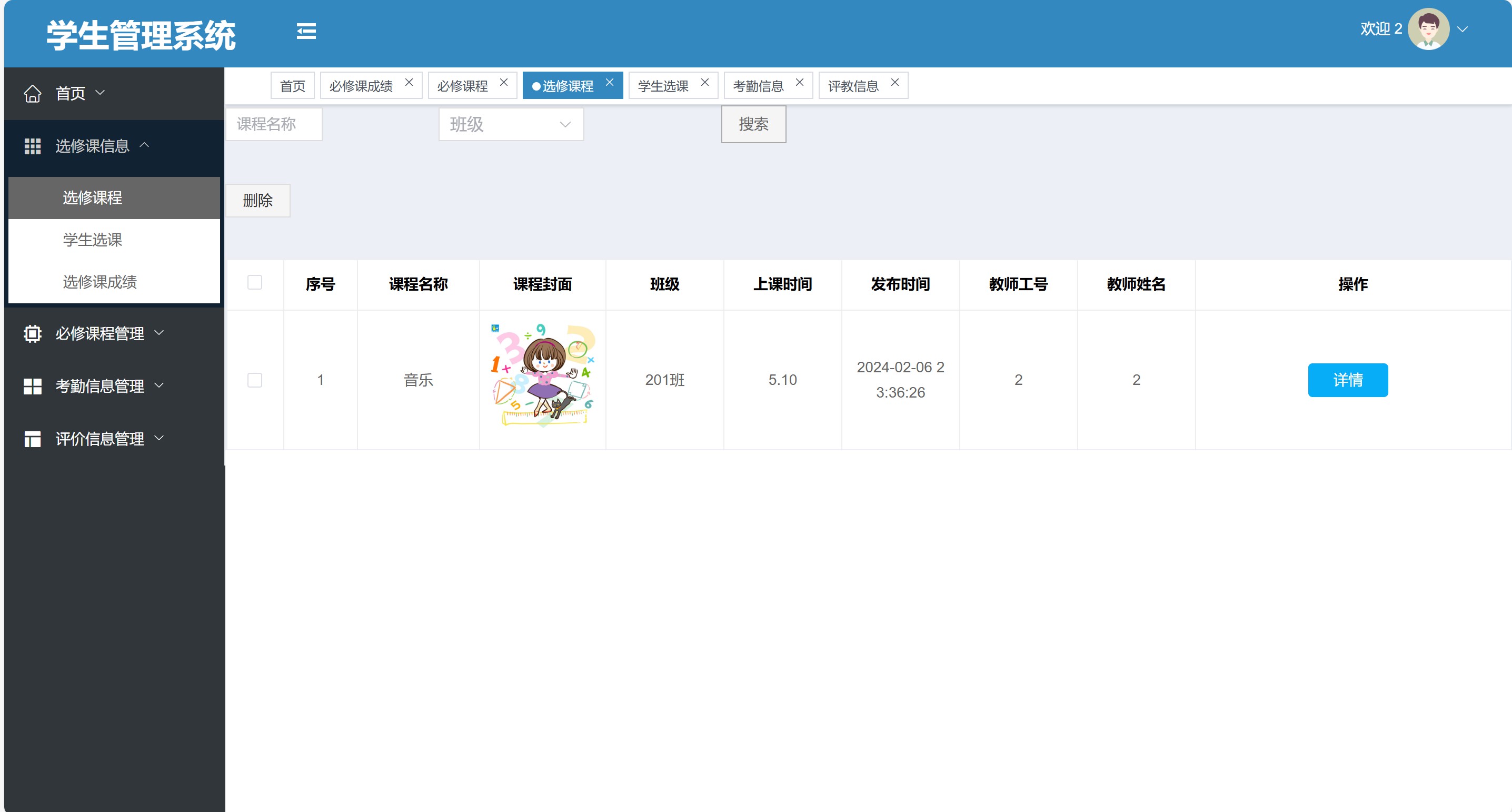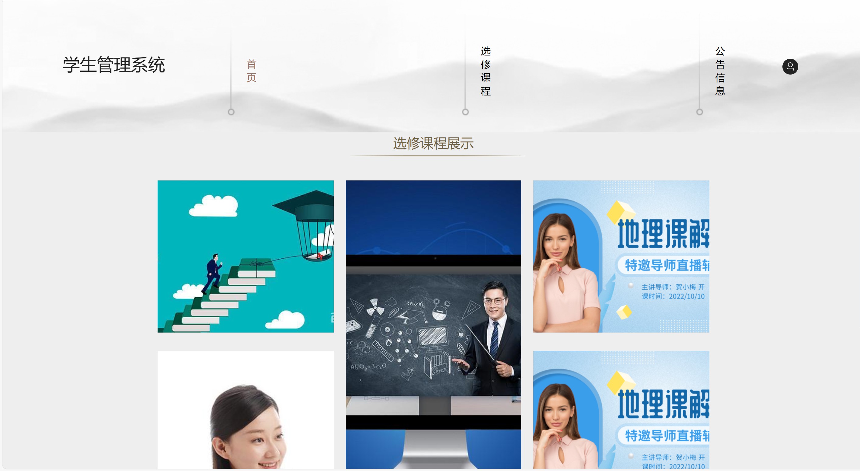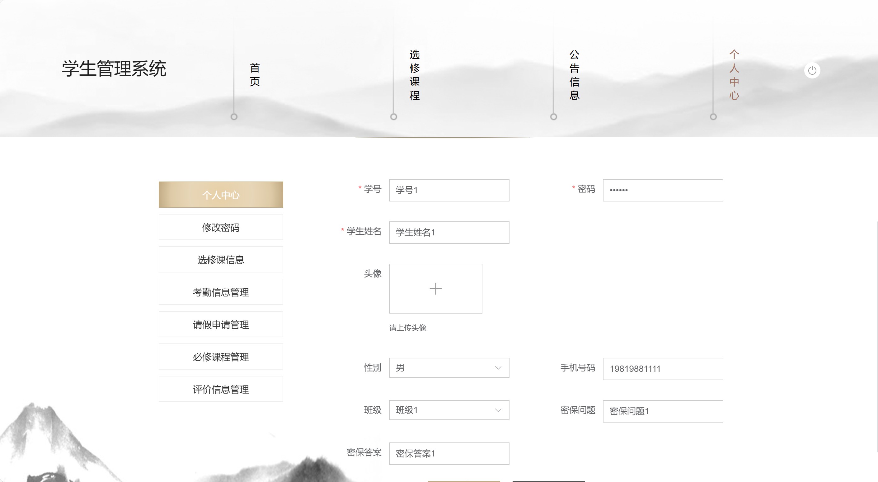 此系统基于SpringBoot框架开发,数据库mysql,前端使用Vue,前后台分离项目,拥有用户管理,考勤信息管理,必修课程管理,学修课管理,请假申请管理,评价信息管理,公告信息管理。