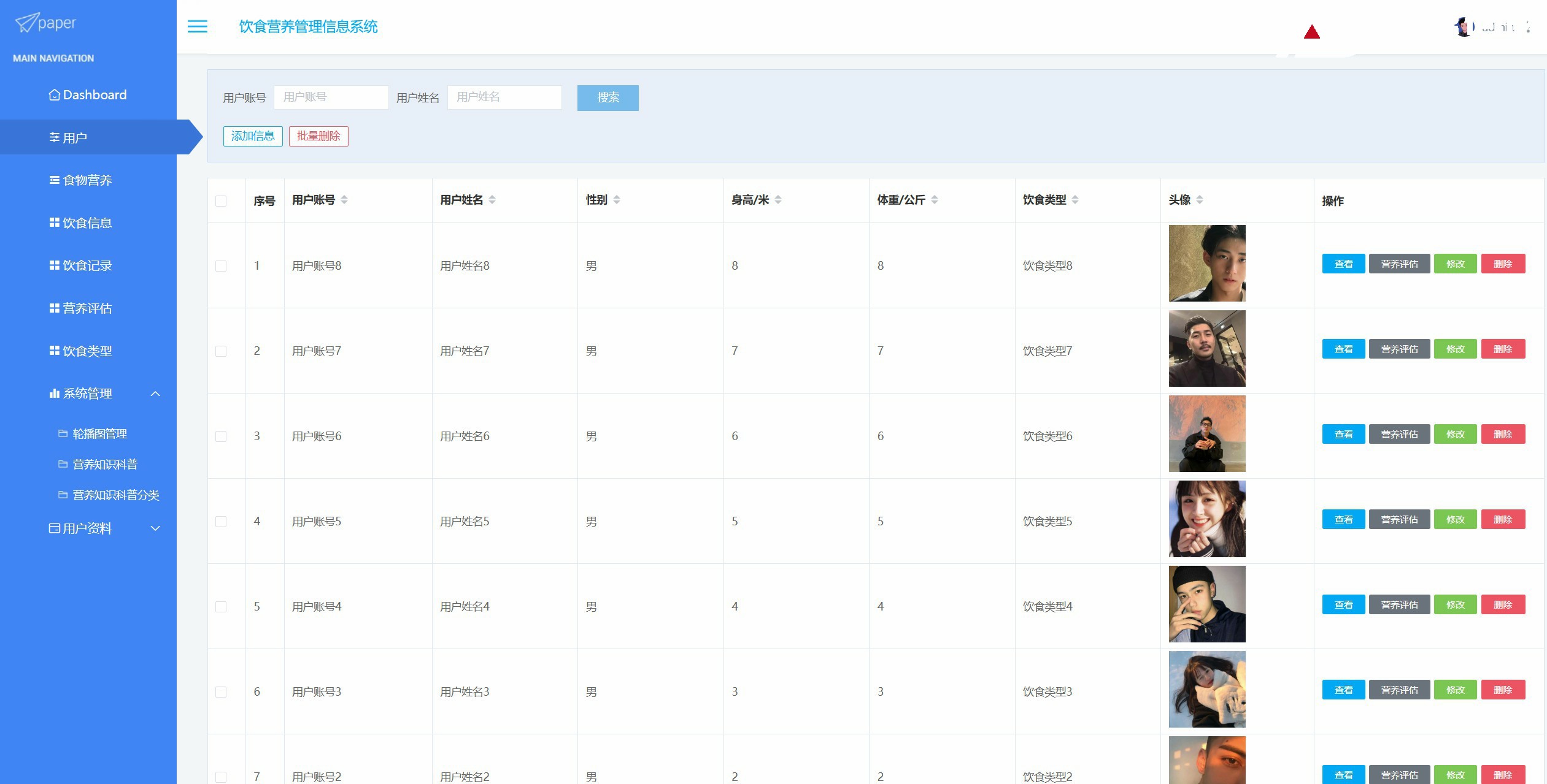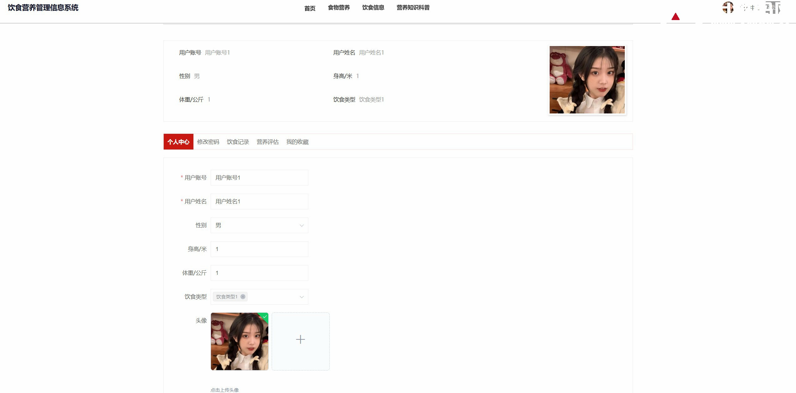 此饮食营养管理信息系统基于SpringBoot框架开发,数据库mysql,前端使用Vue,前后台分离项目,拥有用户管理,食品信息管理,系统管理。