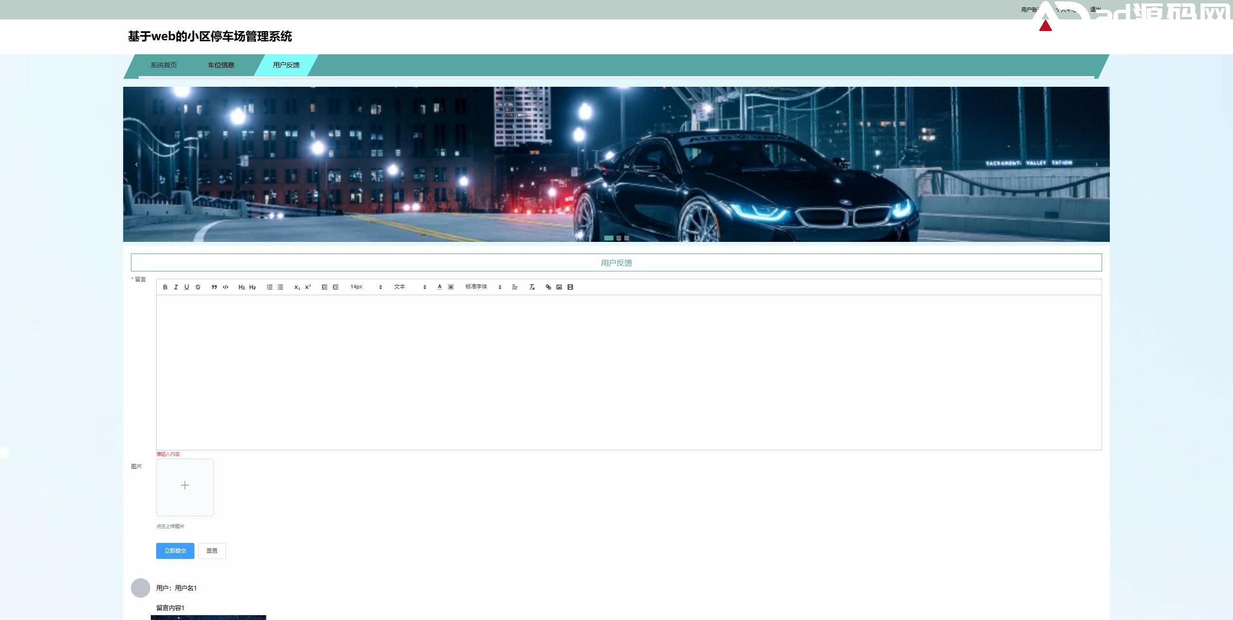 此小区停车场管理系统基于SpringBoot框架开发,数据库mysql,前端使用Vue,前后台分离项目,拥有用户管理,车位信息,停车缴费,用户反馈。