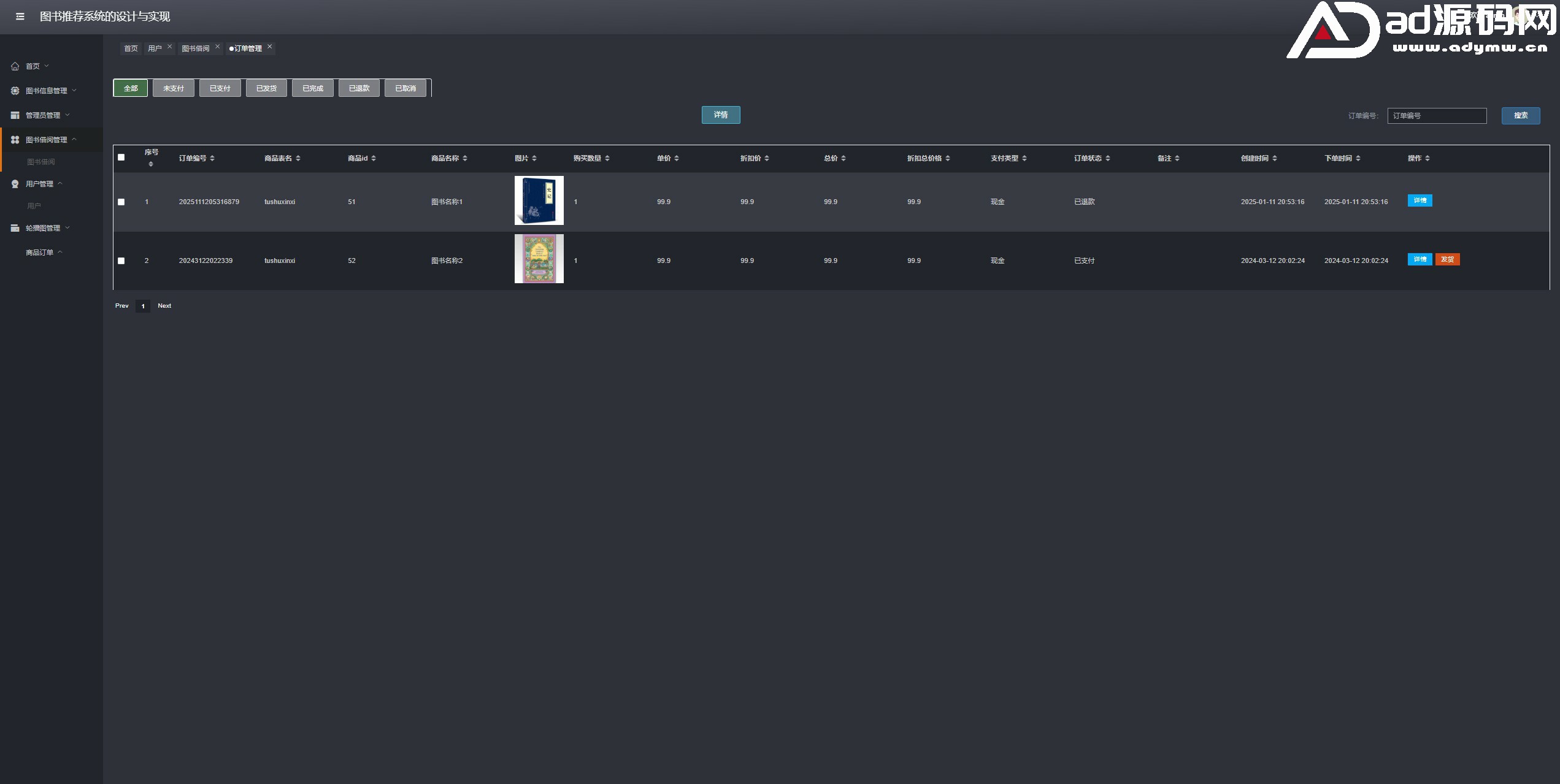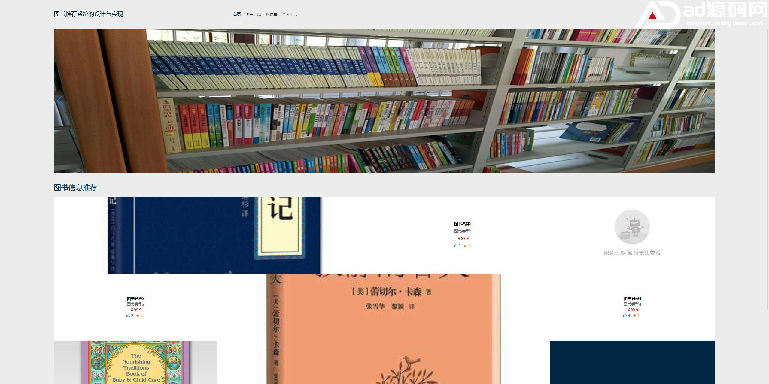 此图书推荐系统基于SpringBoot框架开发,数据库mysql,前端使用Vue,前后台分离项目,拥有用户管理,图书信息管理,借阅管理,订单管理。