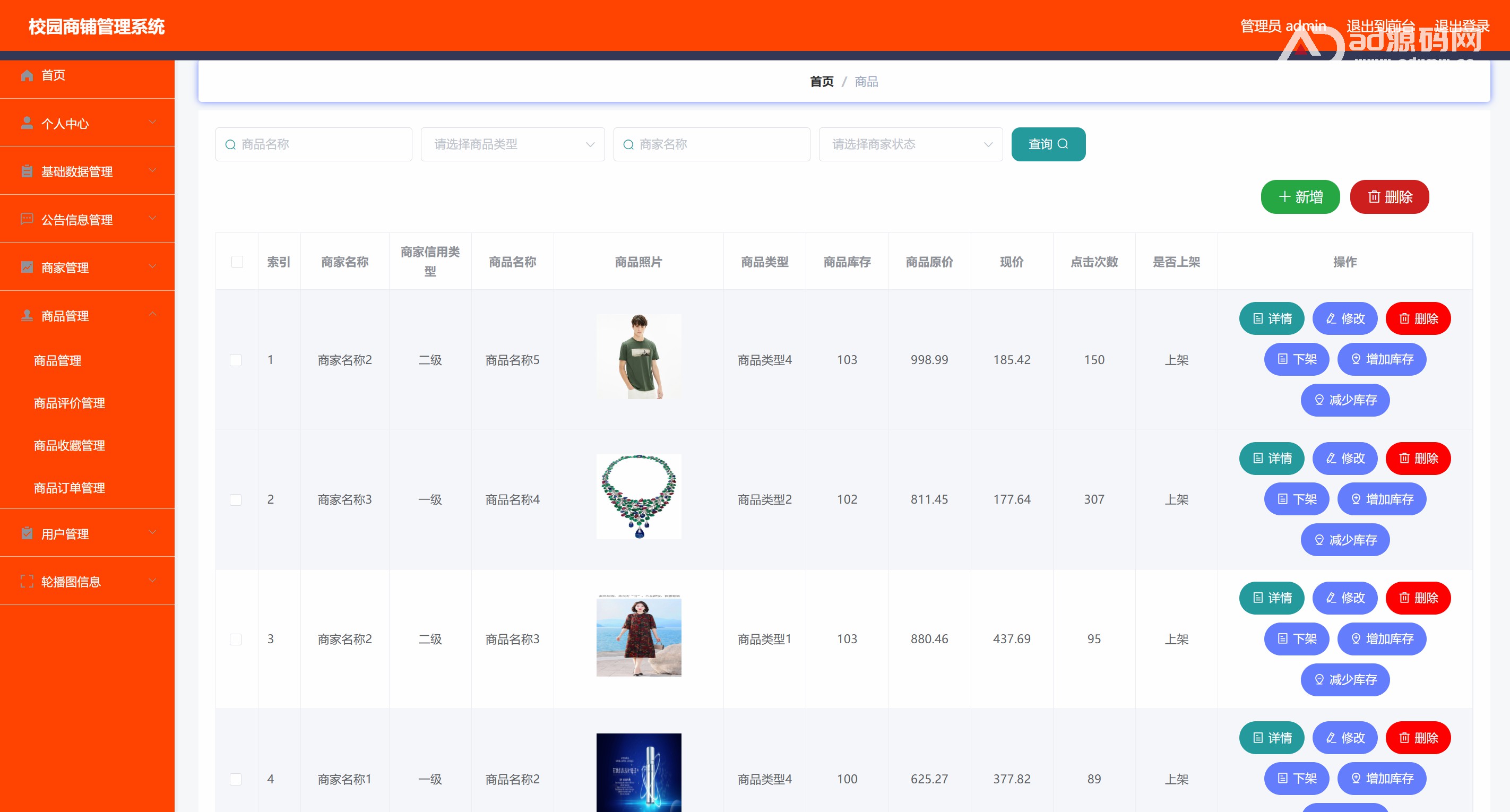 此系统基于SpringBoot框架开发,数据库mysql,前端使用Vue,前后台分离项目,拥有用户管理,商家管理,商品管理,订单管理。