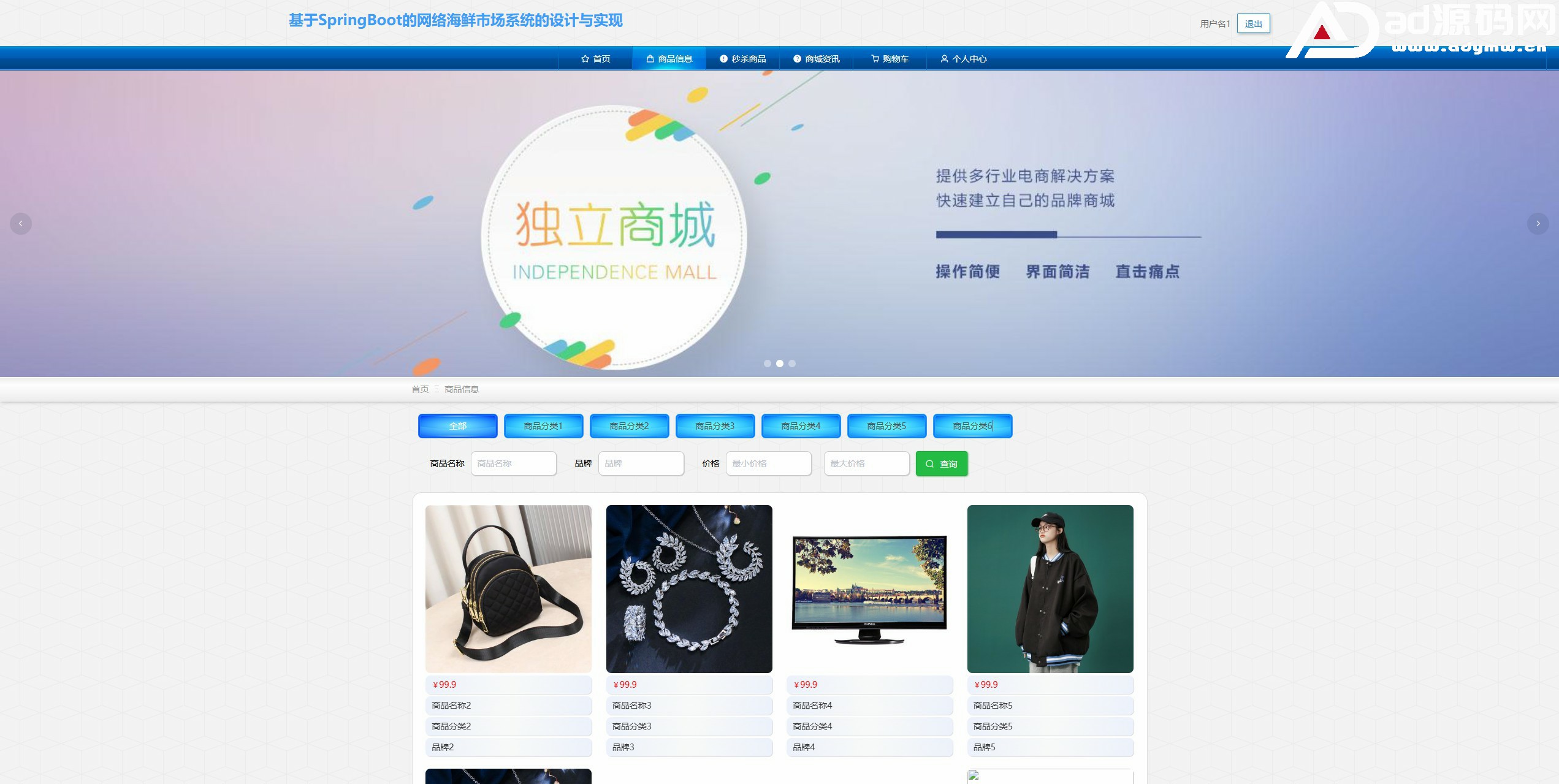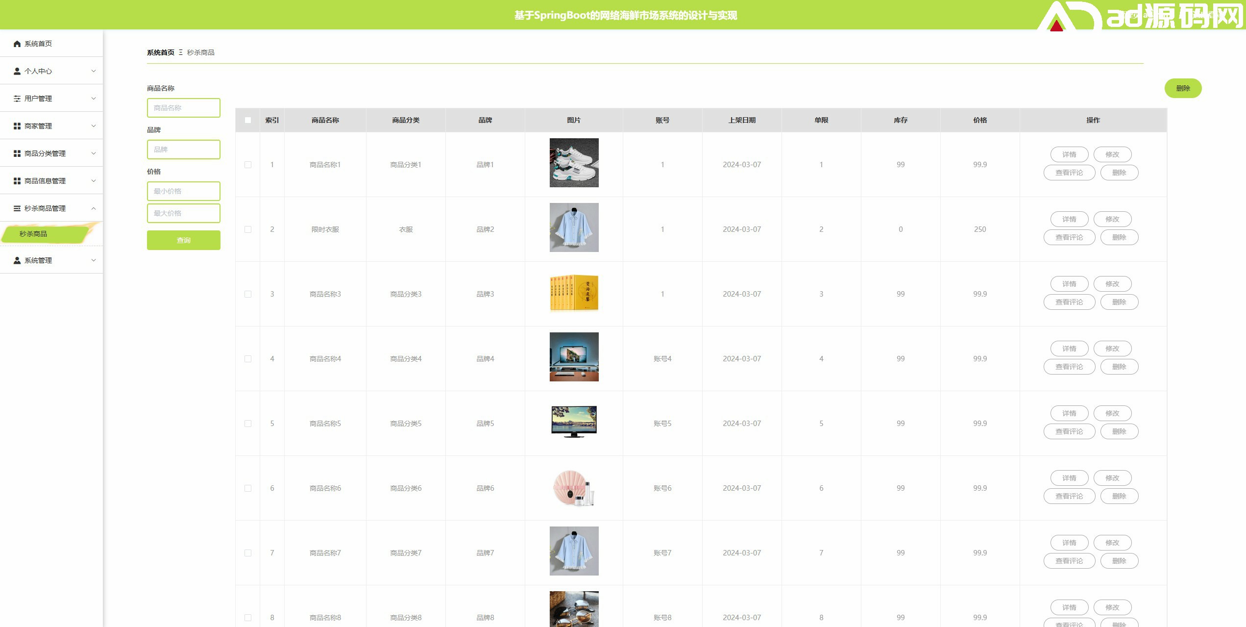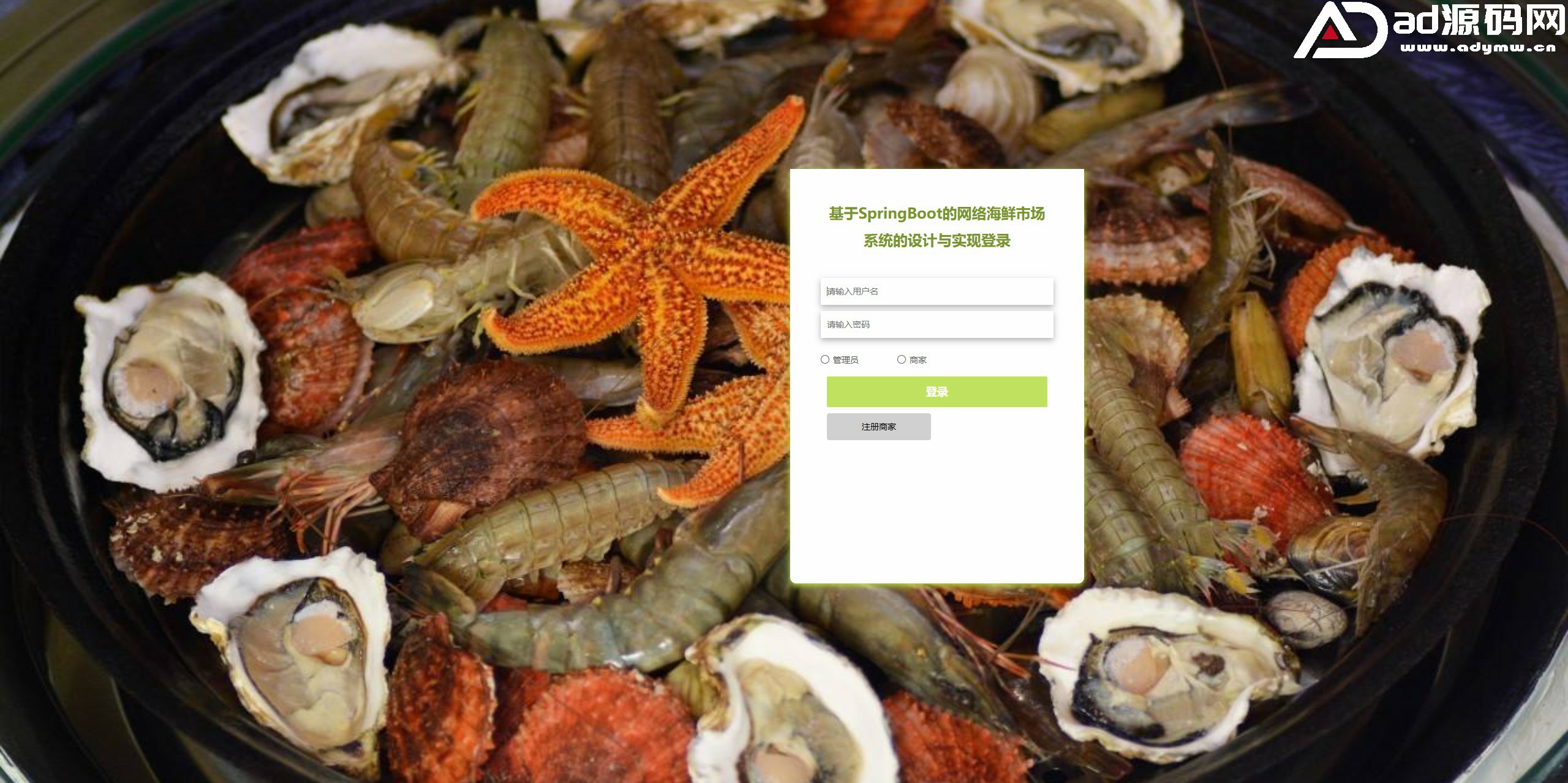 此网络海鲜市场系统基于SpringBoot框架开发,数据库mysql,前端使用Vue,前后台分离项目,拥有用户管理,商家管理,商品管理。