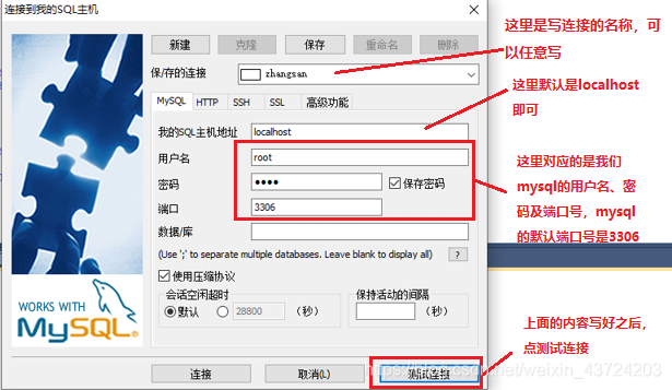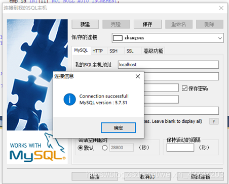 测试连接后,出现这样说明可以连接。然后点确定,再点连接