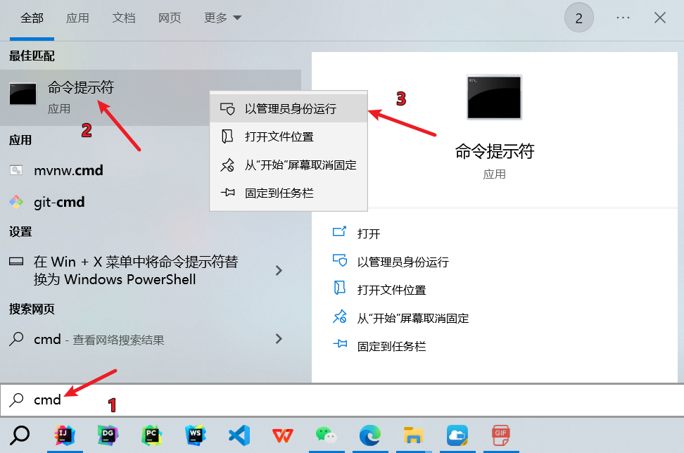 配置好之后启动cmd命令行 (必须是管理员方式启动cmd)