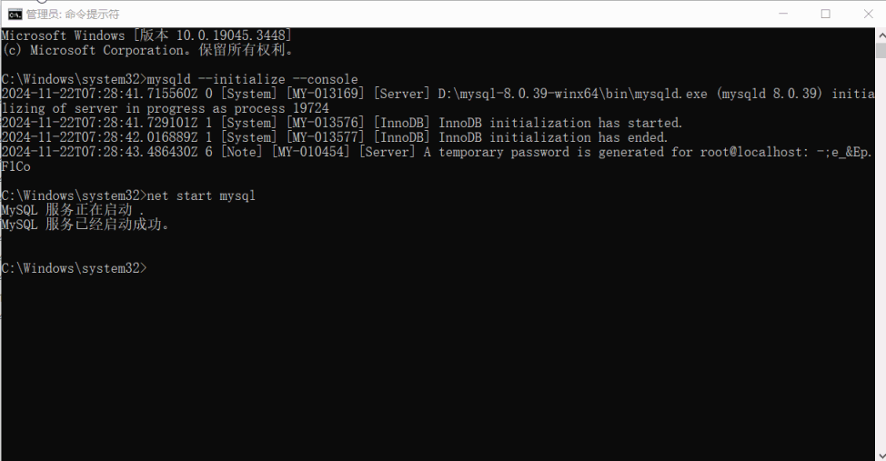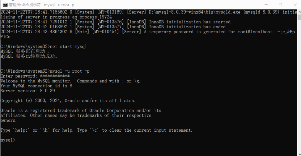 mysqld --initialize --console3.启动mysql