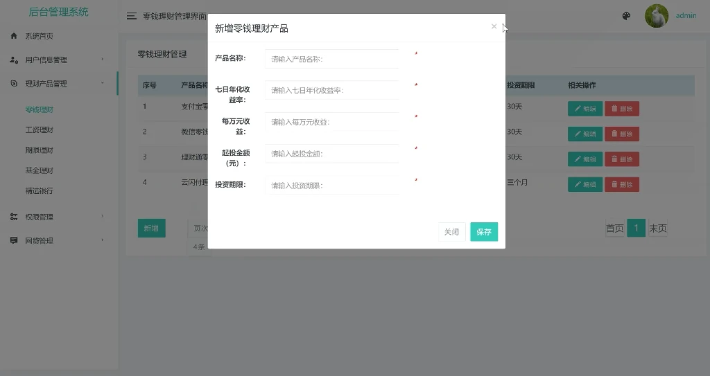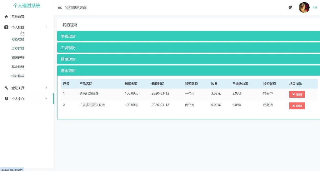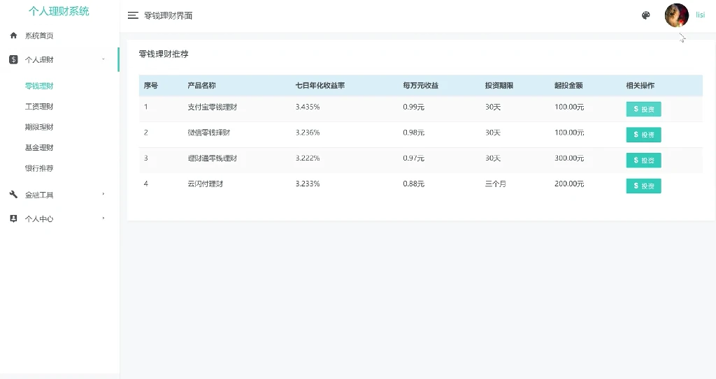 此理财管理系统基于SpringBoot框架开发,数据库mysql,前端Thymeleaf。系统角色分为用户和管理员。用户登录根据系统推荐进行投资理财,申请贷款。管理员可以审批贷款,管理用户权限,管理用户等。