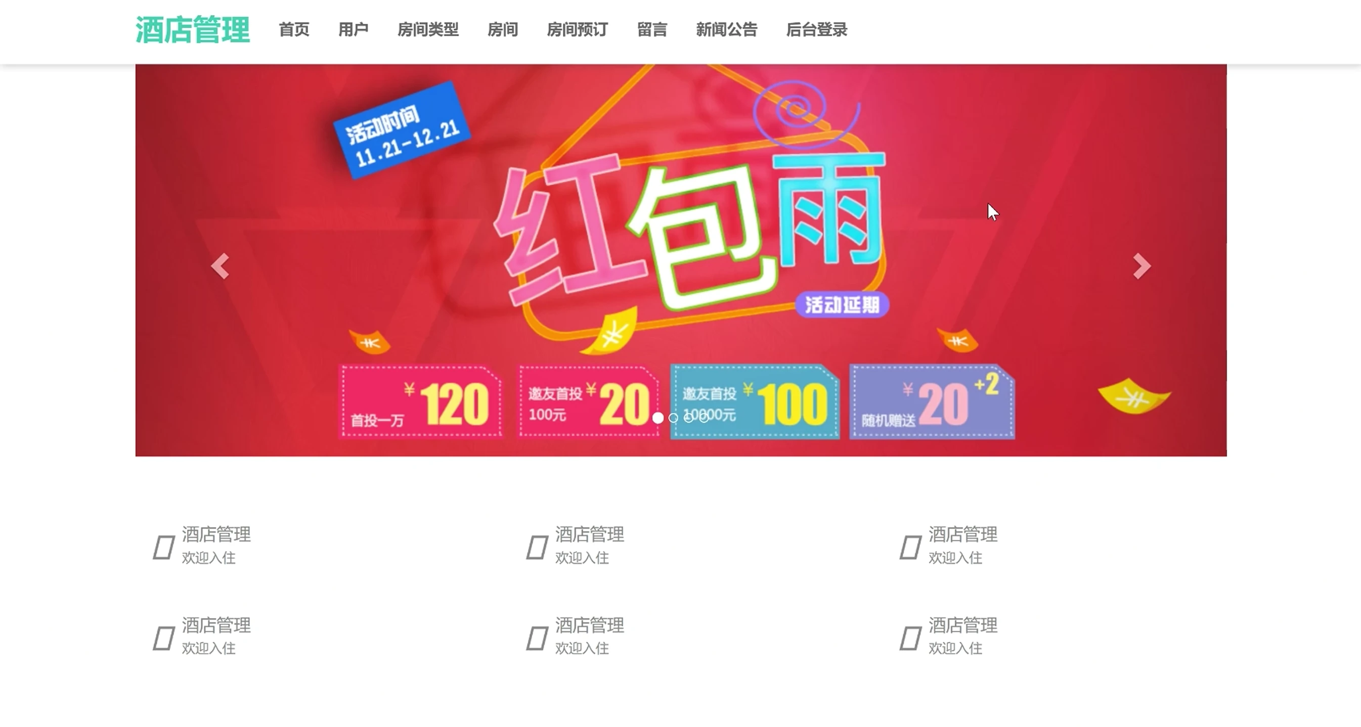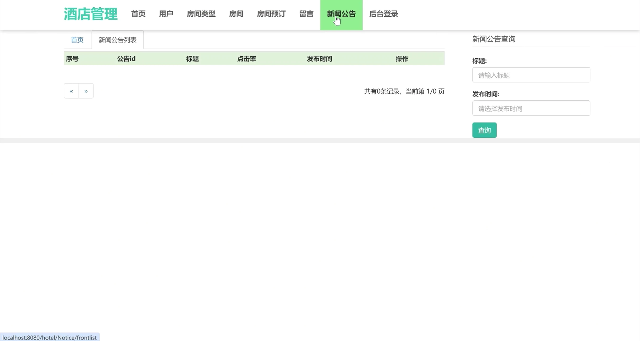 此酒店管理系统基于SSM框架开发,数据库mysql,前端JSP。系统分为前台和后台,后台可以发布管理酒店的信息,前台可以查询酒店的信息,公告,新闻等。