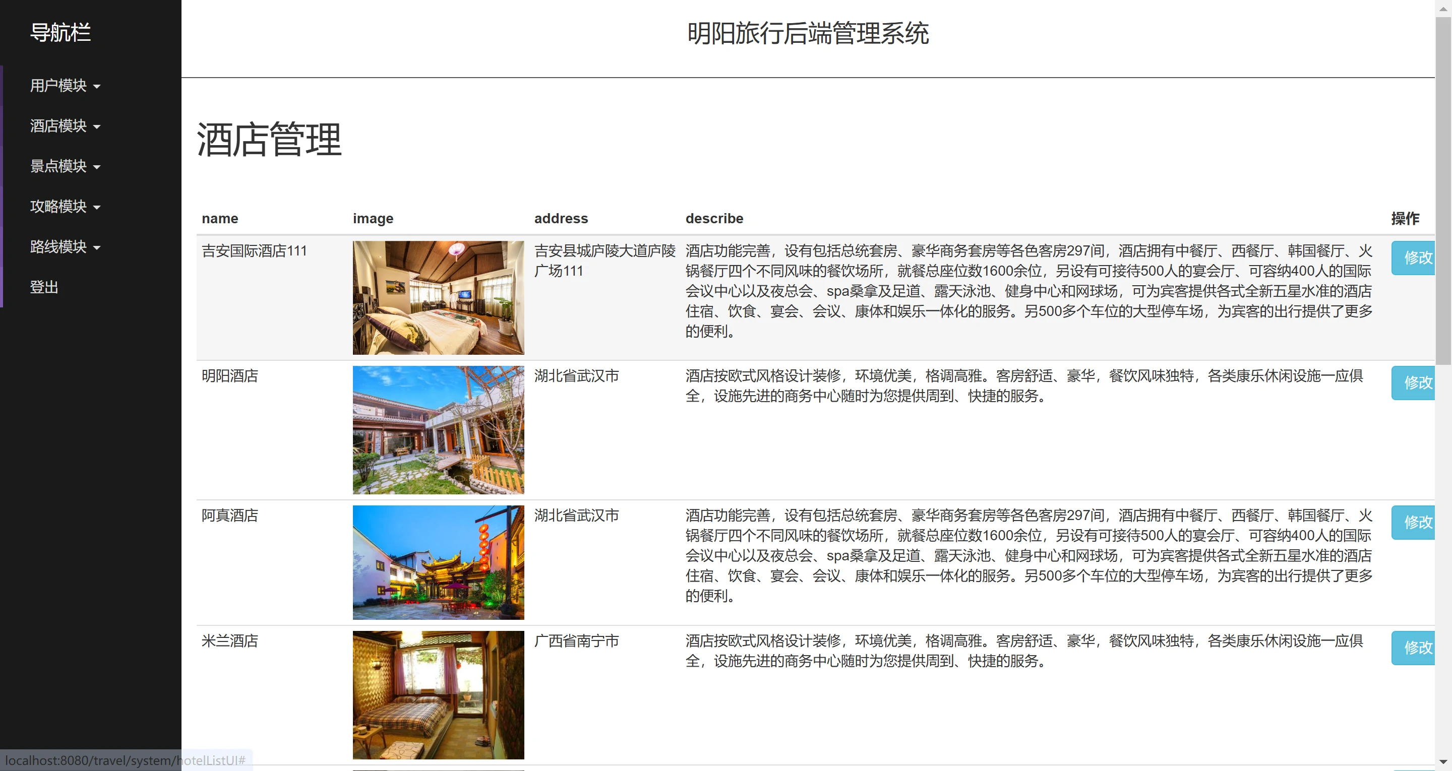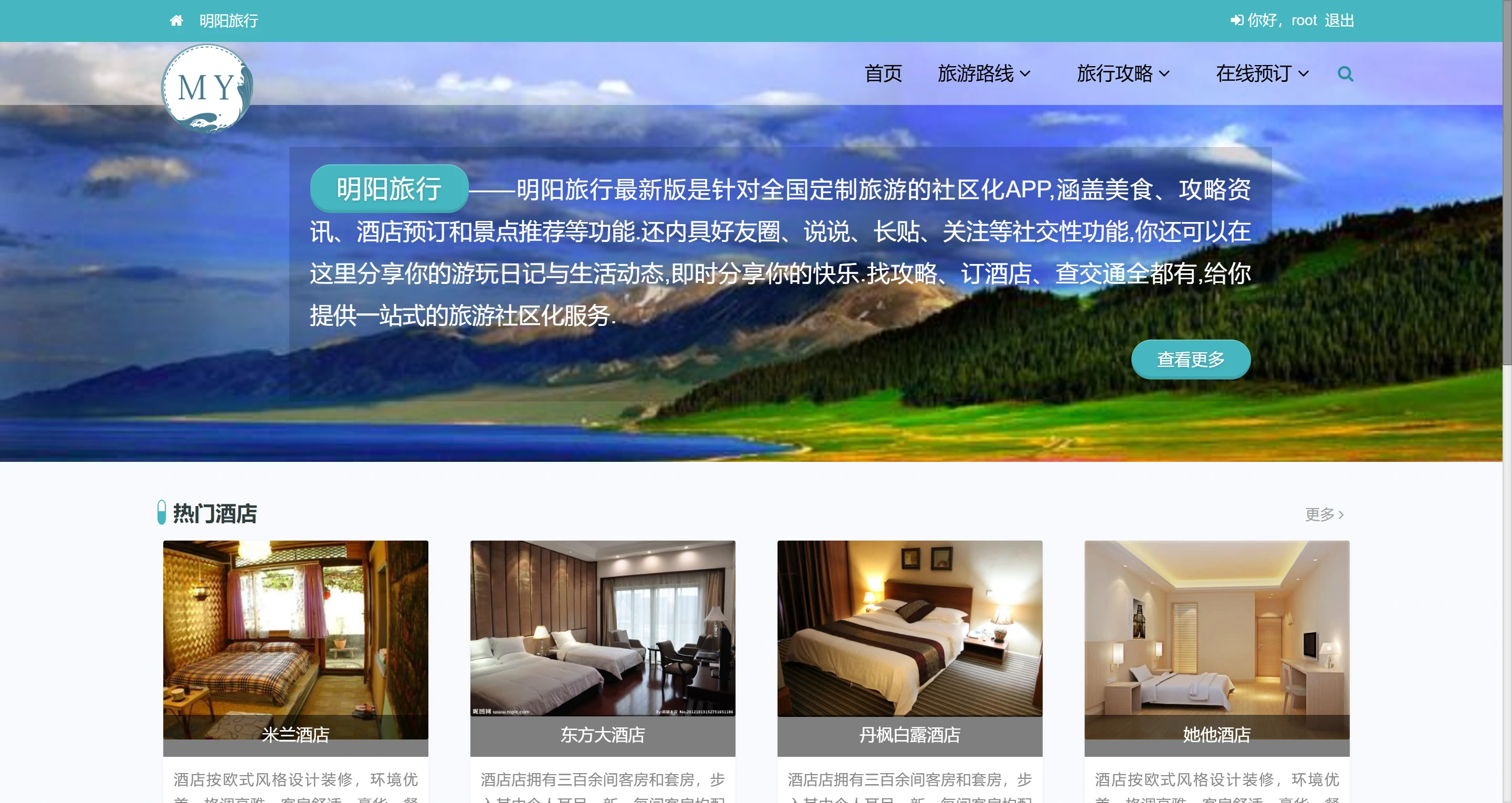 此旅游项目系统基于SpringBoot框架开发,数据库mysql,前端Thymeleaf。系统角色分为用户和管理员。前台有旅行攻略模块、酒店预约模块、攻略模块。后台为管理系统管理旅游平台信息。