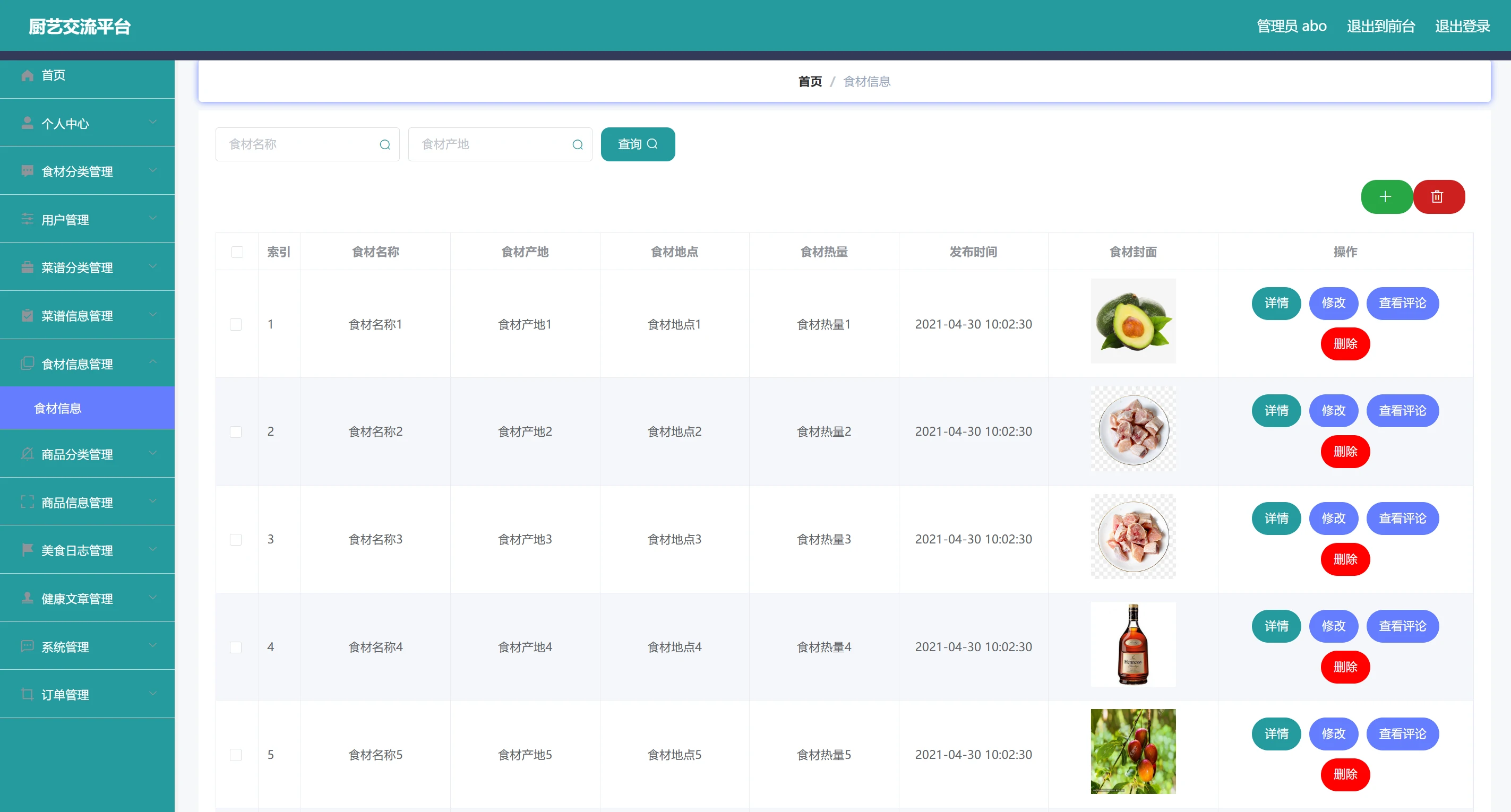 此餐饮销售系统基于SpringBoot框架开发,数据库mysql,前端使用Vue。拥有用户、和管理员角色,并且前后台分离项目,拥有个人中心、用户管理、食品分类管理、菜谱信息管理、食材信息管理、商品信息管理、美食日志管理、订单管理、系统管理。