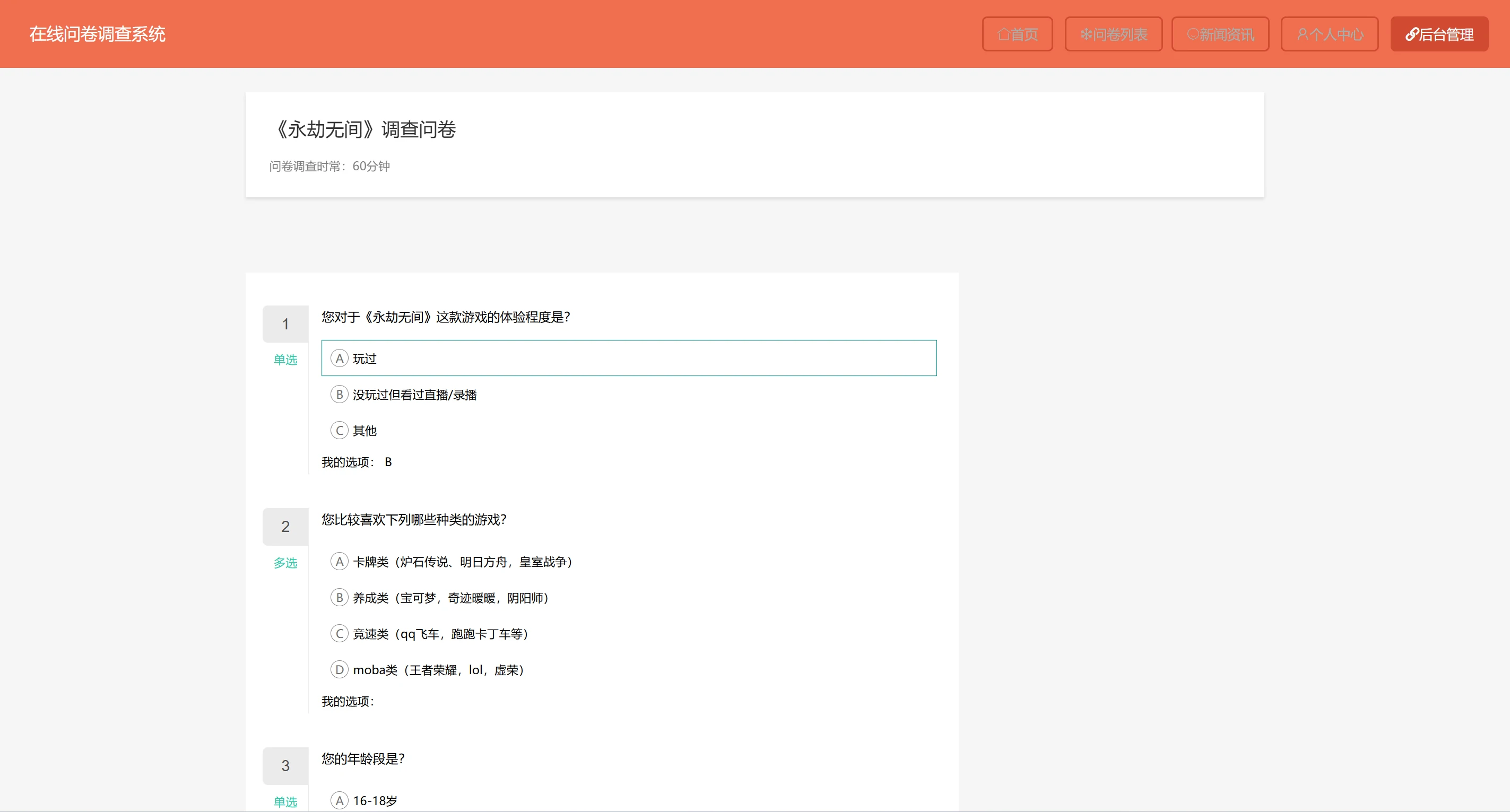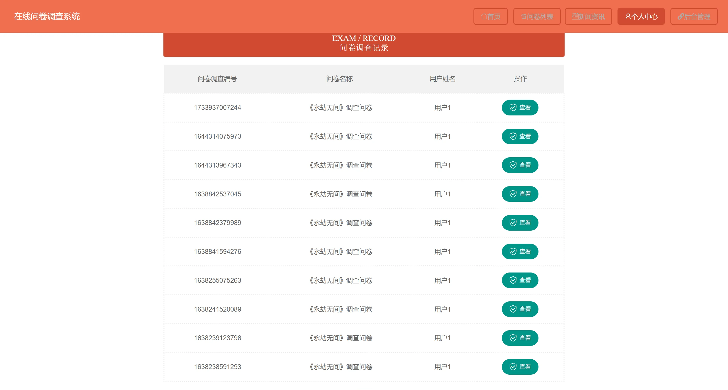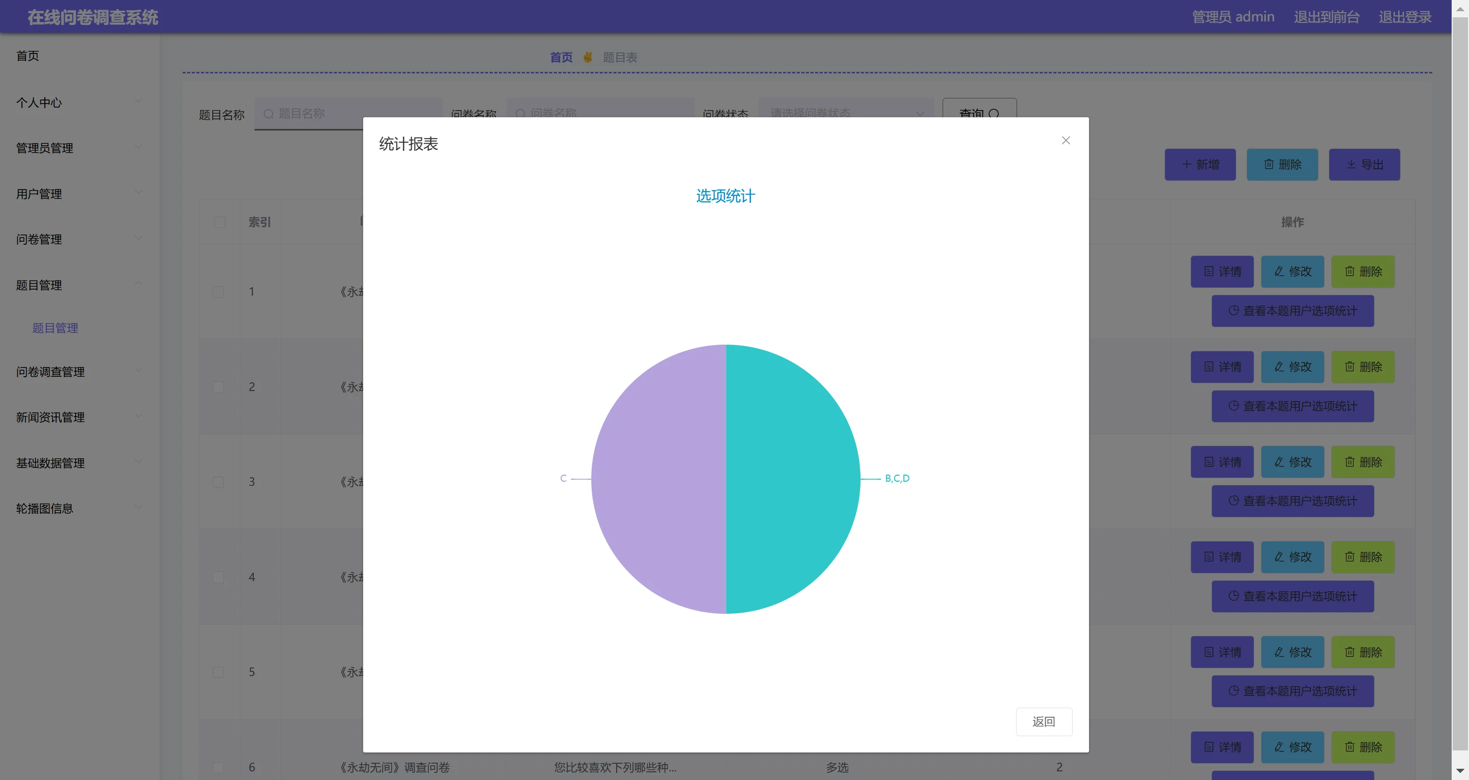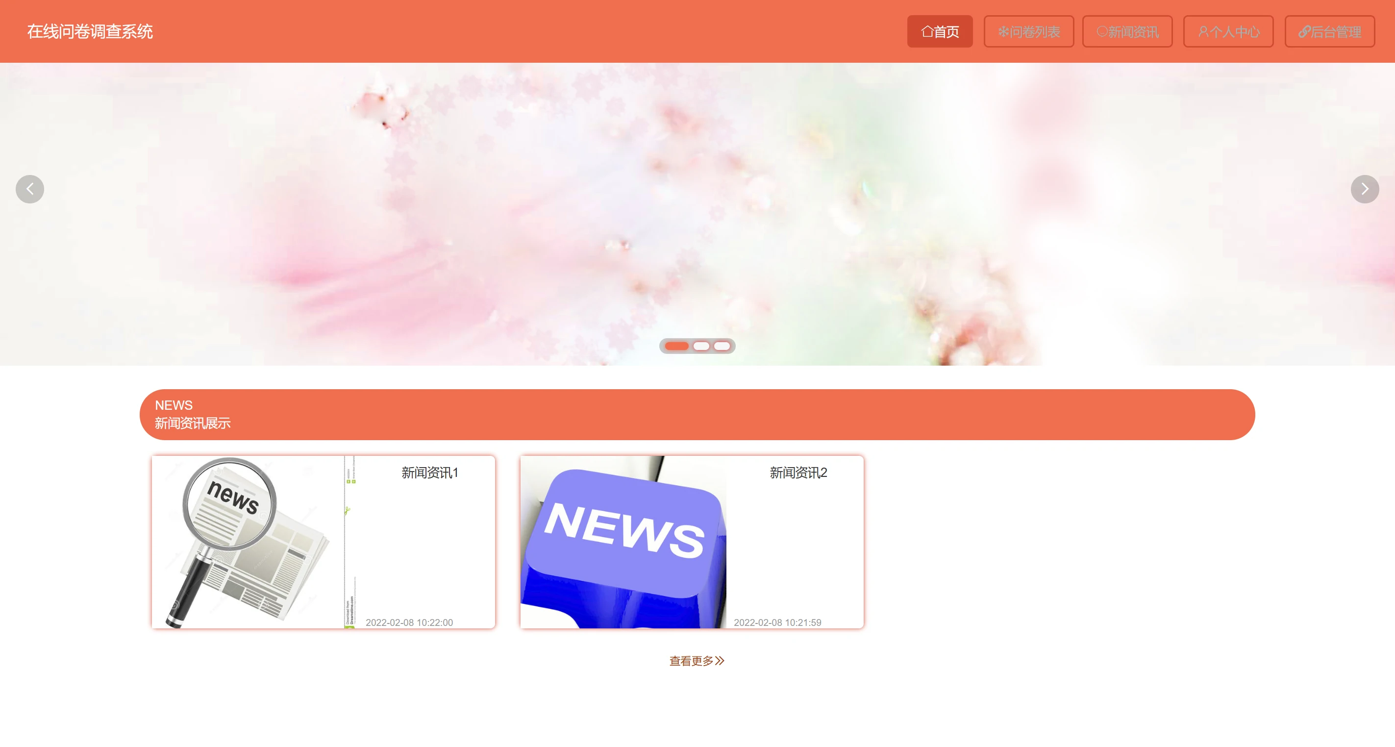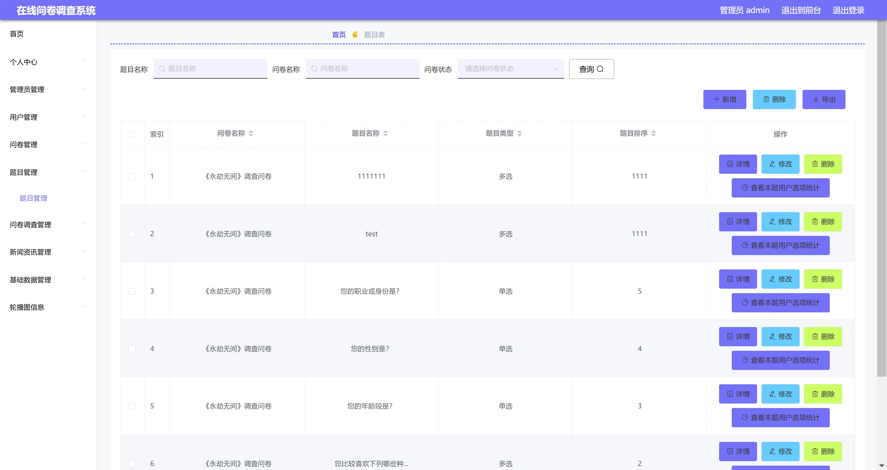 此问卷调查系统基于SpringBoot框架开发,数据库mysql,前端使用Vue。拥有用户角色,并且前后台分离项目,拥有发布问卷、查看问卷、问卷详情、用户注册、问卷分析个人中心、系统管理。