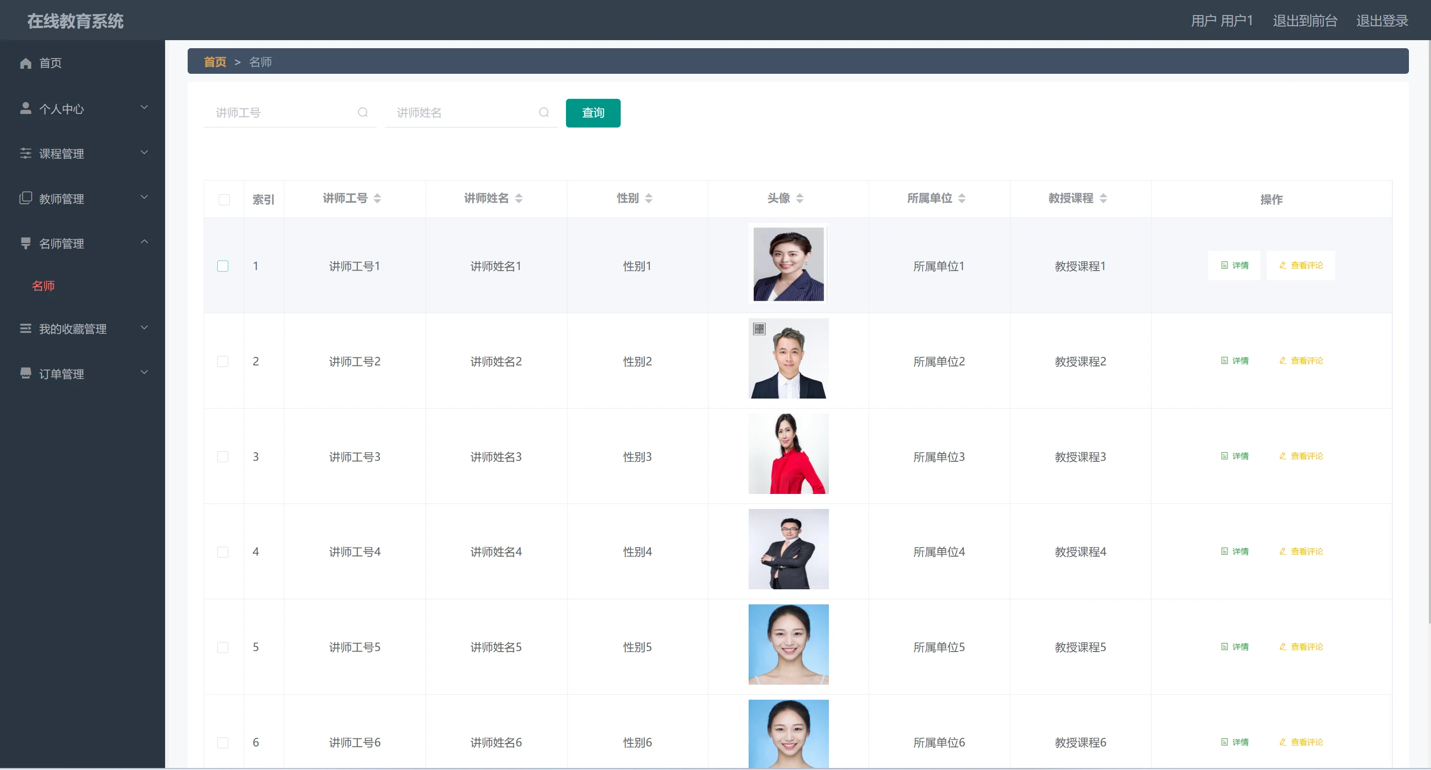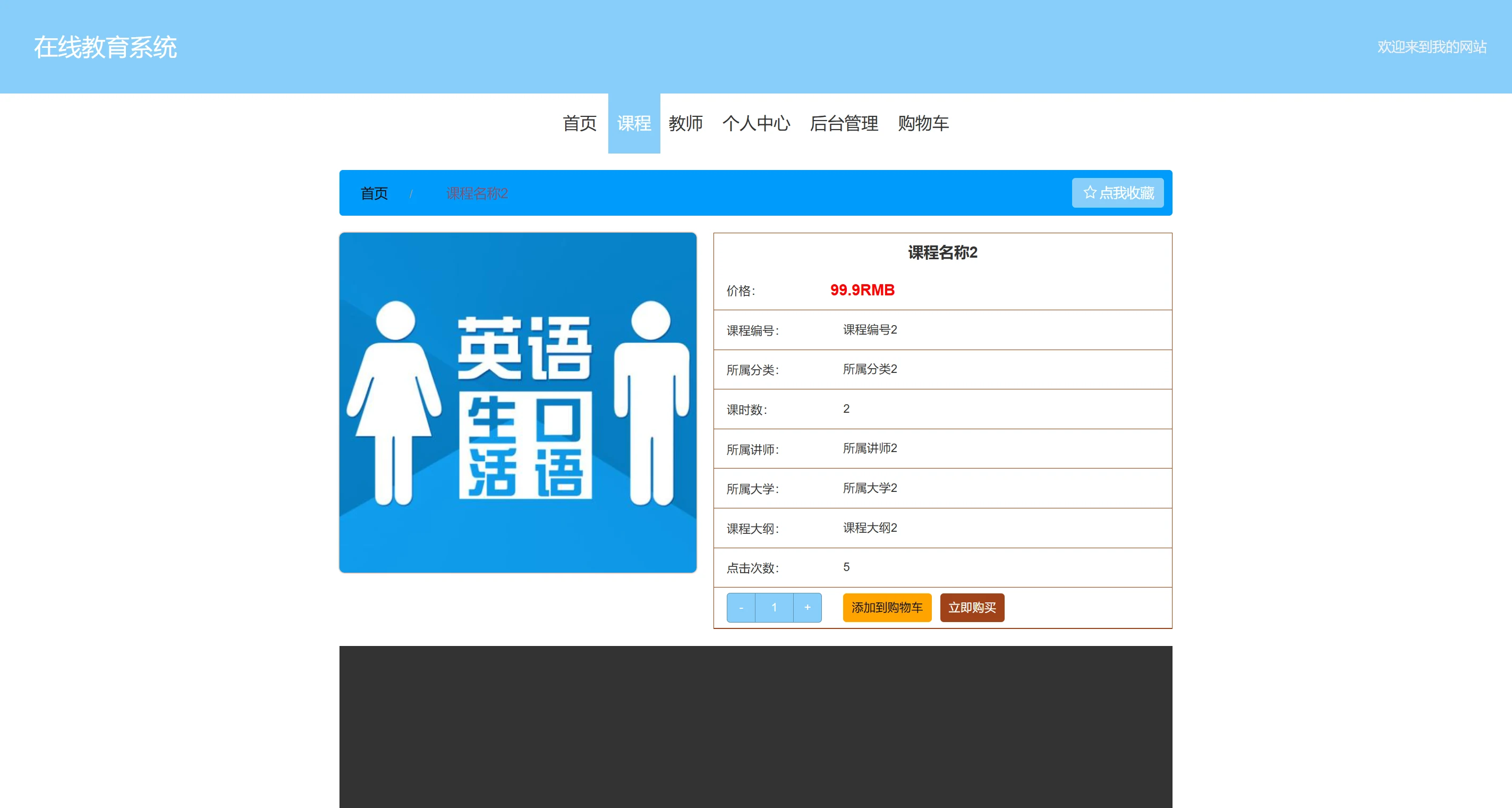 此在线教育系统基于SpringBoot框架开发,数据库mysql,前端使用Vue。拥有用户角色,并且前后台分离项目,拥有个人中心、课程管理、教师管理、名师管理、系统管理。