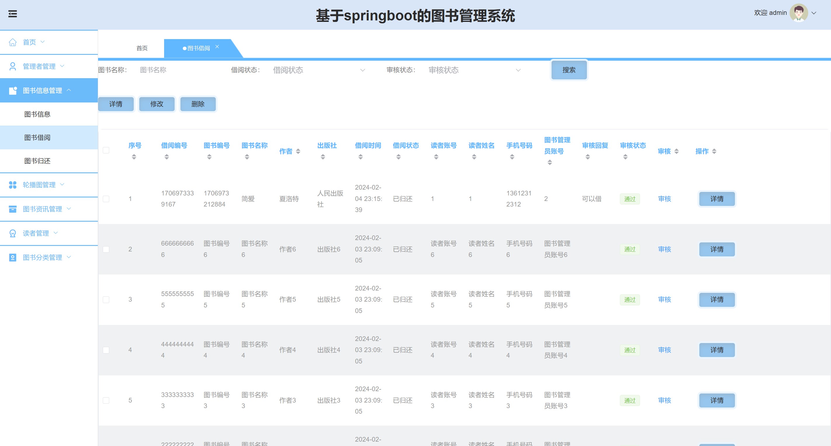 此图书管理系统基于SpringBoot框架开发,数据库mysql,前端使用Vue。拥有用户、管理员角色,并且前后台分离项目,拥有系统管理、个人中心 、图书借阅、读者管理、图书分类、图书信息。
