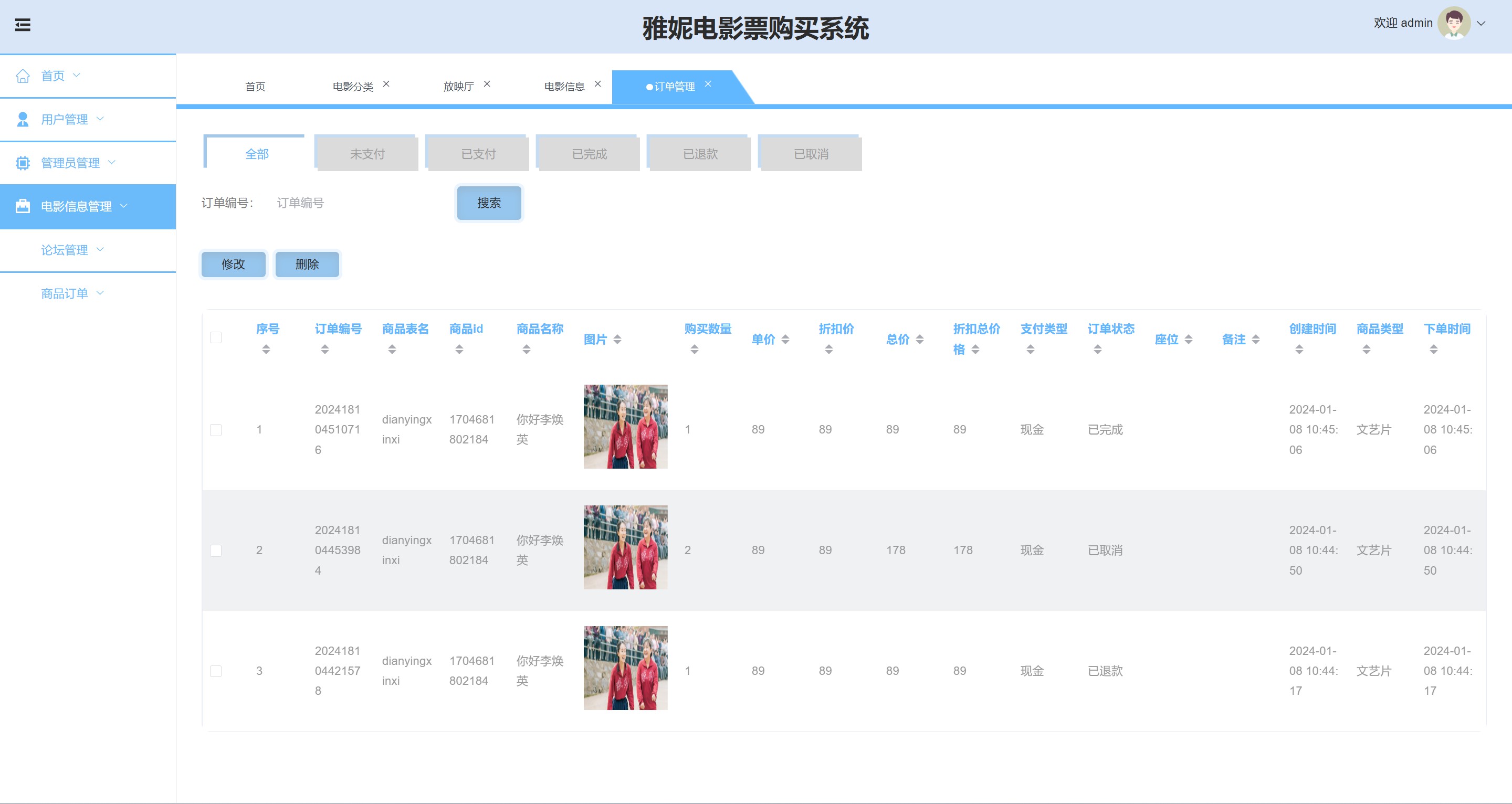 此电影票购买系统基于SpringBoot框架开发,数据库mysql,前端使用Vue。拥有用户、管理员角色,并且前后台分离项目,拥有电影管理、用户管理、论坛管理、订单管理。