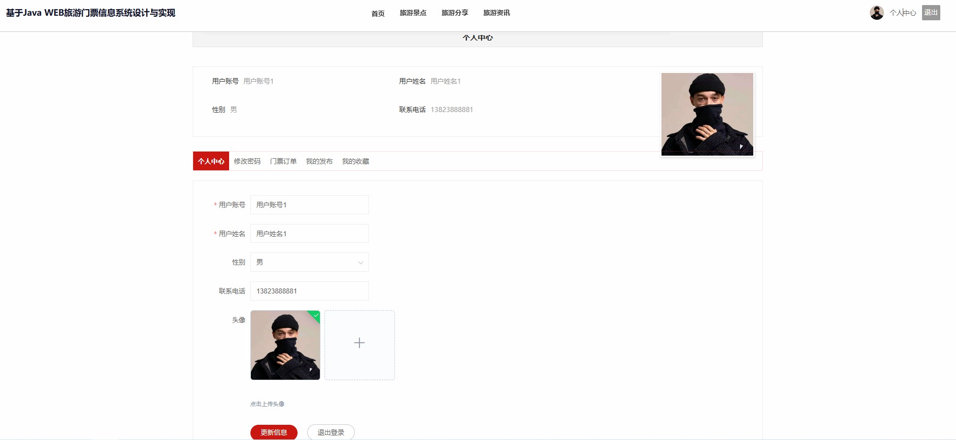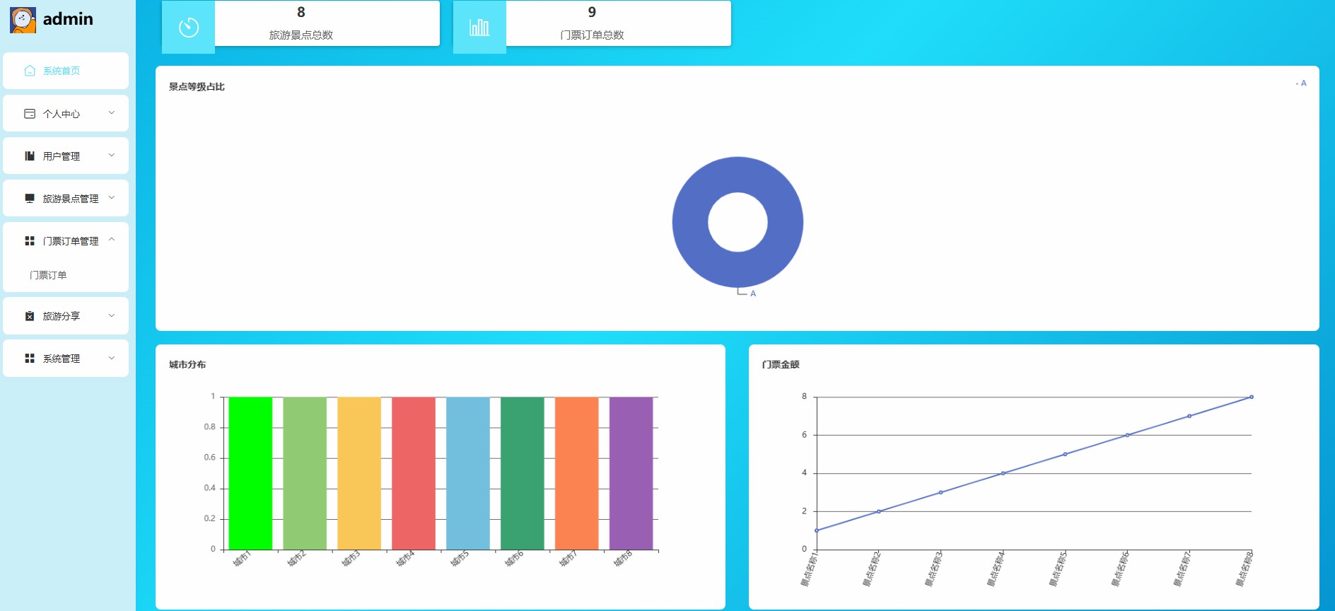此旅游门票信息系统基于SpringBoot框架开发,数据库mysql,前端使用Vue。拥有用户、管理员角色,并且前后台分离项目,拥有旅游景点管理、用户管理、分享管理、订单管理。