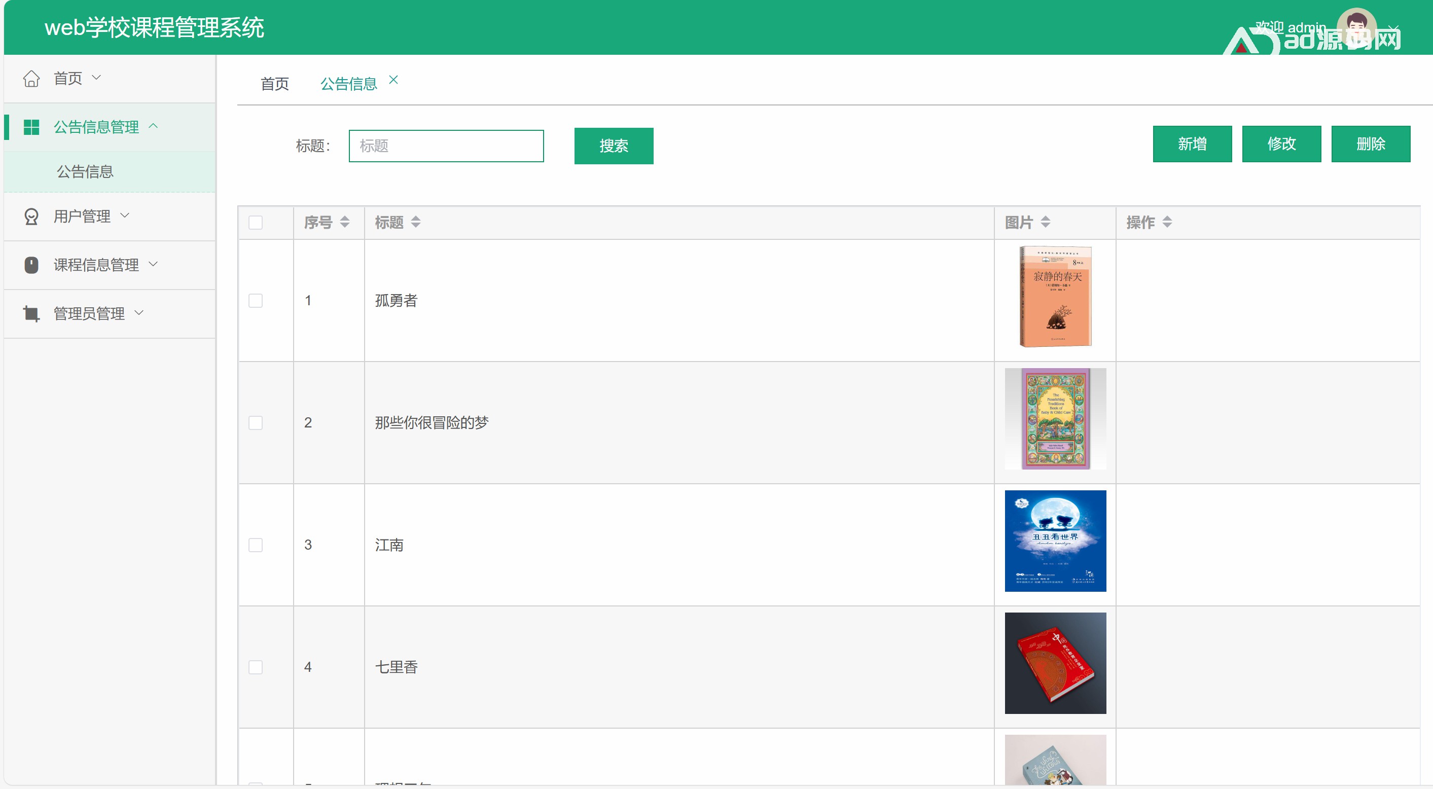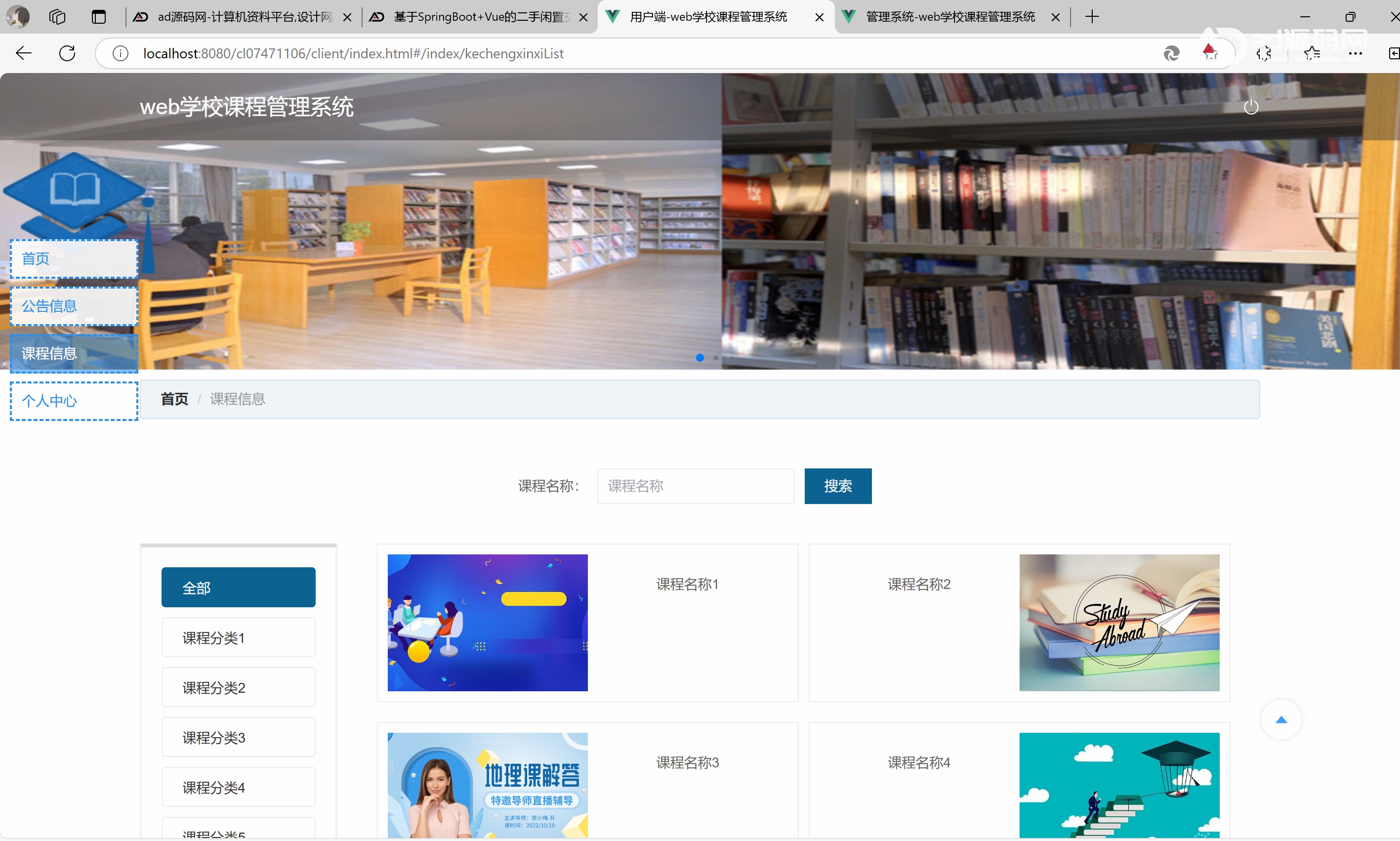 此学校课程管理系统基于SpringBoot框架开发,数据库mysql,前端使用Vue,前后台分离项目,拥有个人中心,用户管理,课程信息管理,管理员管理。